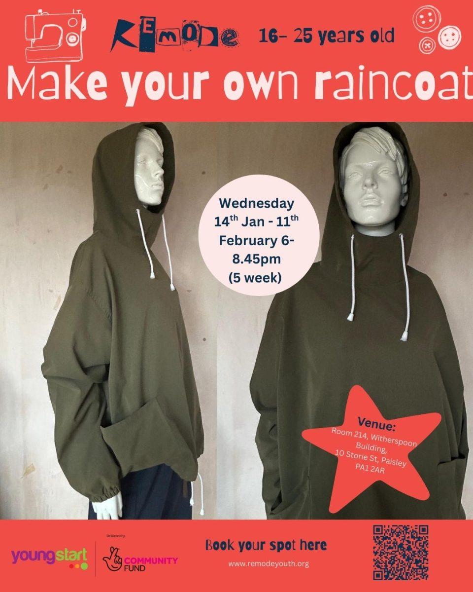 Raincoat making workshop every Wednesday from 14th January – 11th February 6- 8.45pm (5 week course)
