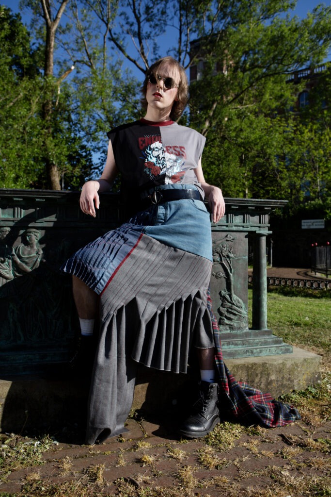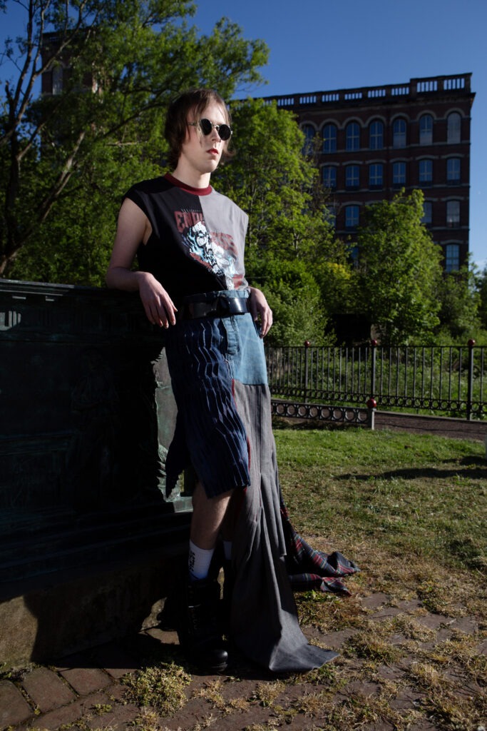 In two hands-on sessions, Jack introduced the group to traditional kilt-making techniques. Participants then adapted these methods to design their own garments, thinking creatively about upcycling and how to reduce textile waste. The results are inventive, thoughtful pieces that connect sustainability with cultural heritage.